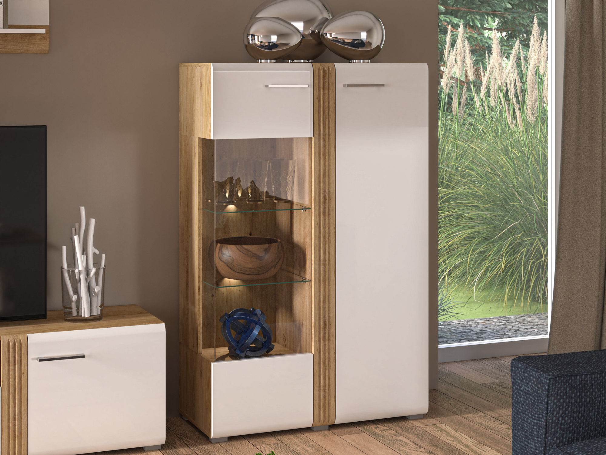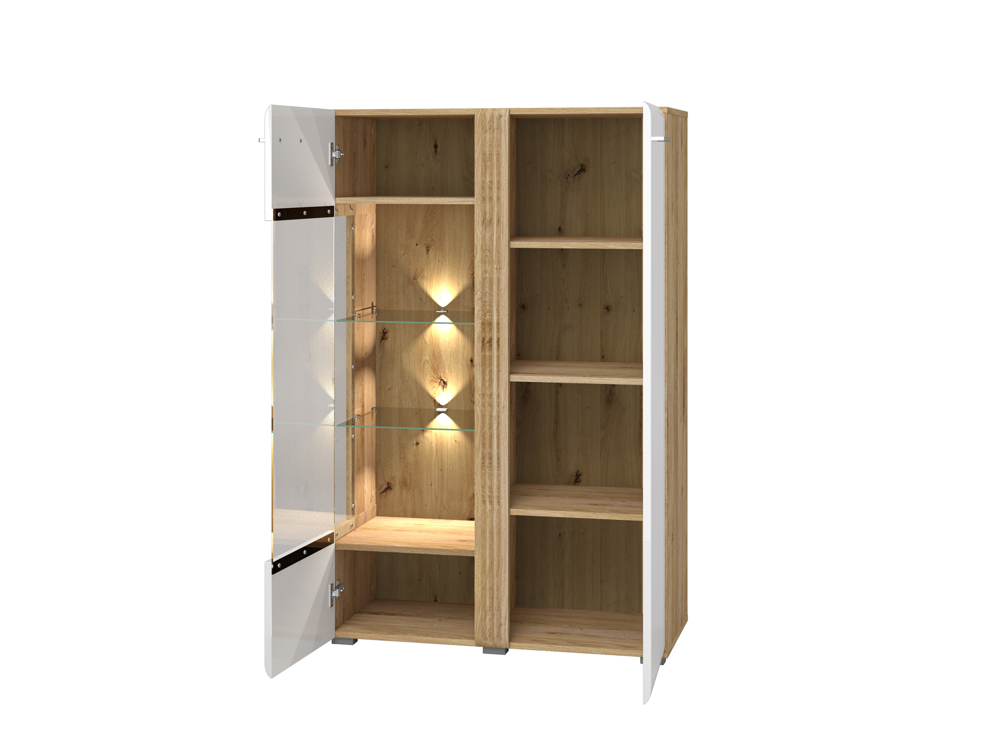 A spacious piece of furniture with a large top for displaying favorite items. Inside, there’s a shelf dividing the space into two large compartments. Four large drawers with reinforced bottoms provide ample space for towels, clothes, or other textiles. This furniture piece is ideal for the living room or bedroom, combining functionality and good design. Features include rounded MDF fronts, deeply grooved trims, metal and chrome handles, soft-closing hinges, increased drawer capacity, and full-extension drawer slides.